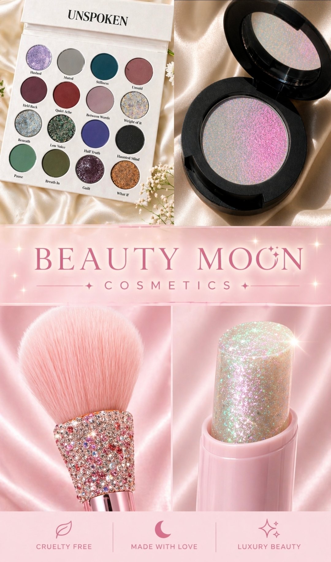 Unspoken is a deeply emotive eyeshadow palette inspired by quiet strength, hidden depth, and the beauty of what’s felt rather than said.