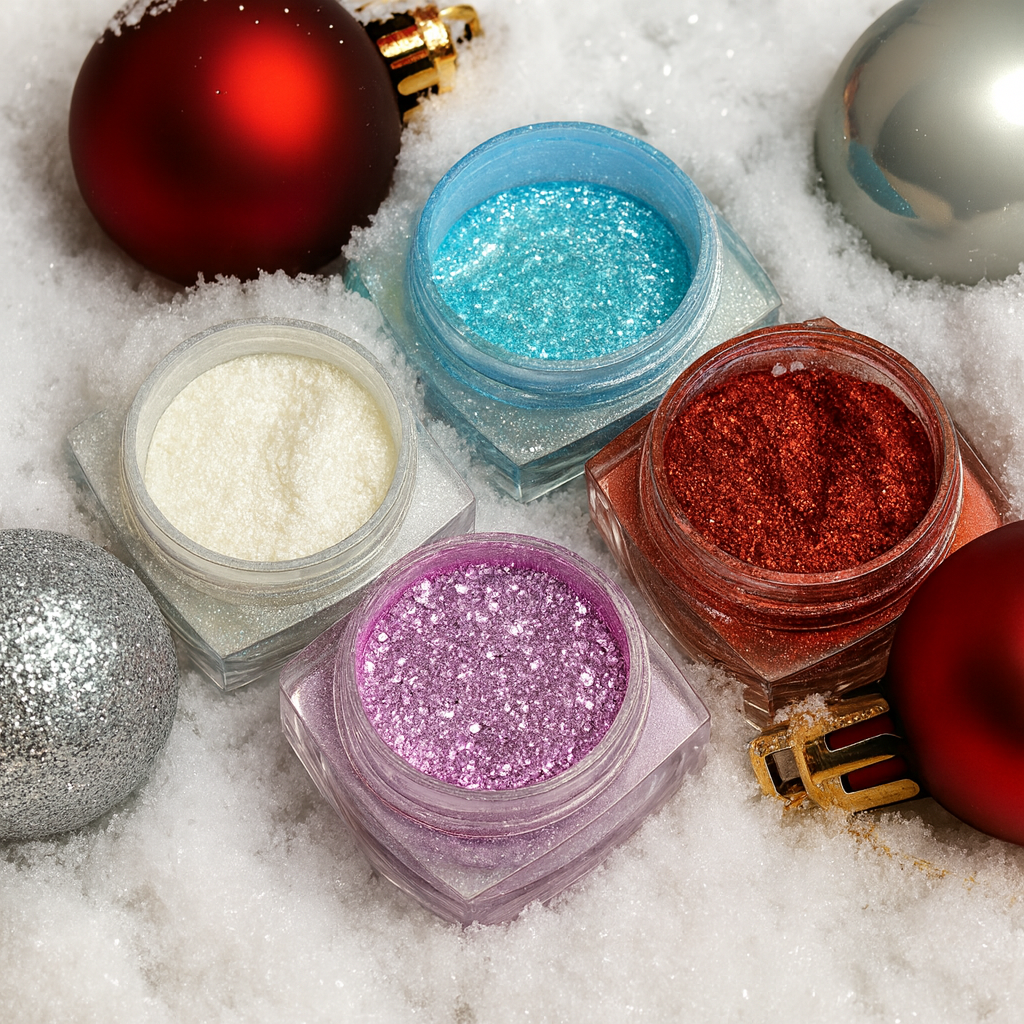 Bring the magic of the season straight to your makeup looks with our ultra-sparkly Christmas Pigments. Each shade bursts with festive shimmer, delivering intense colour payoff and a dazzling glow that catches every light — just like Christmas lights on a snowy night.